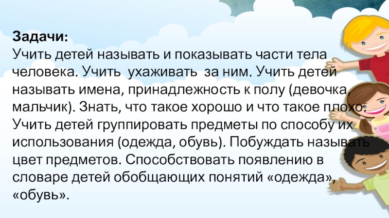 Учить детей называть и показывать части тела человека. Учить ухаживать за