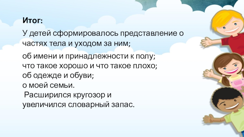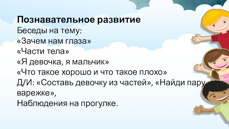 ним. Учить детей называть имена, принадлежность к полу (девочка, мальчик). Знать, что такое хорошо и что такое плохо.