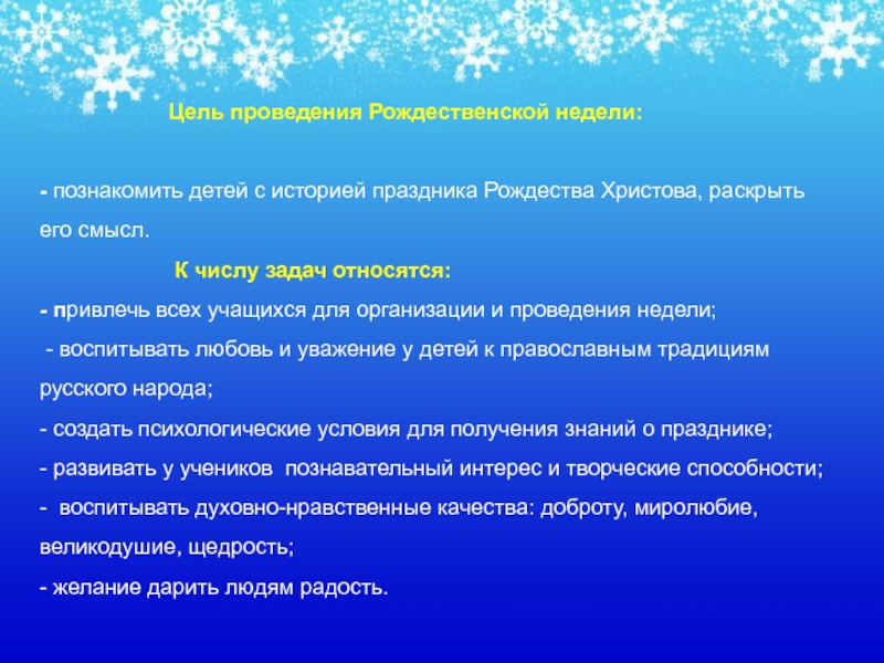 Цель проведения Рождественской недели: