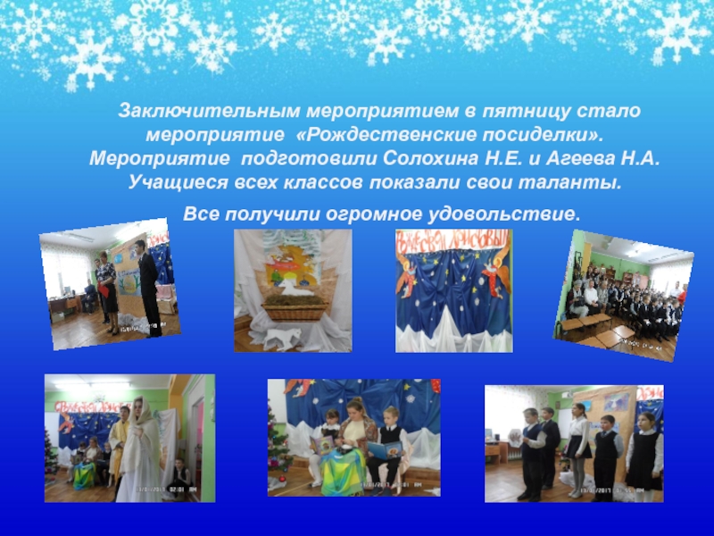 Заключительным мероприятием в пятницу стало мероприятие «Рождественские посиделки». Мероприятие подготовили Солохина