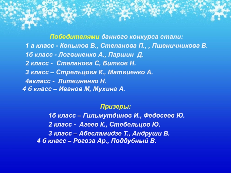 Победителями данного конкурса стали:
