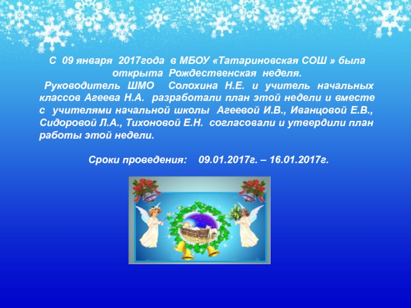 Сроки проведения: 09.01.2017г. – 16.01.2017г.