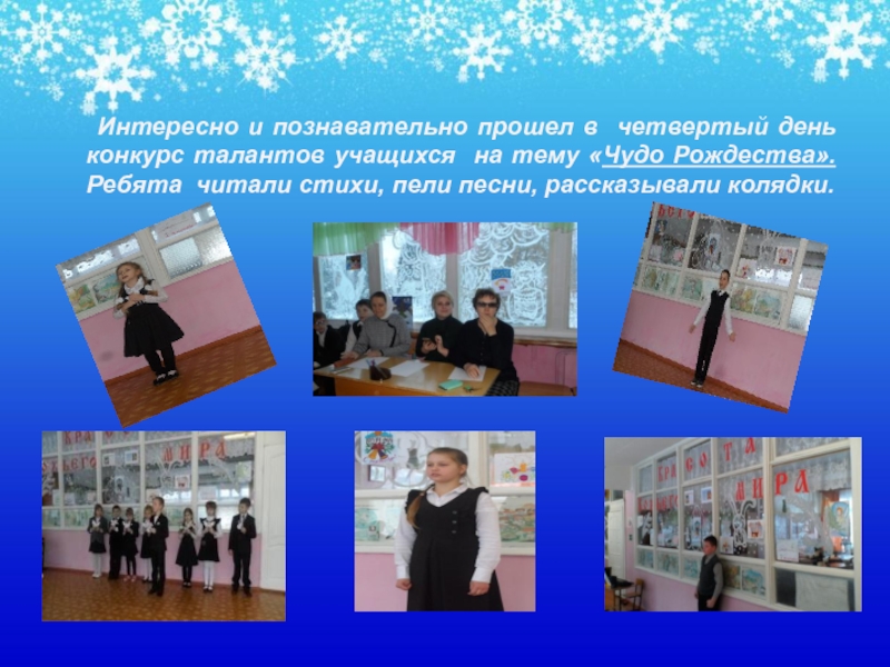 тему «Чудо Рождества». Ребята читали стихи, пели песни, рассказывали колядки.