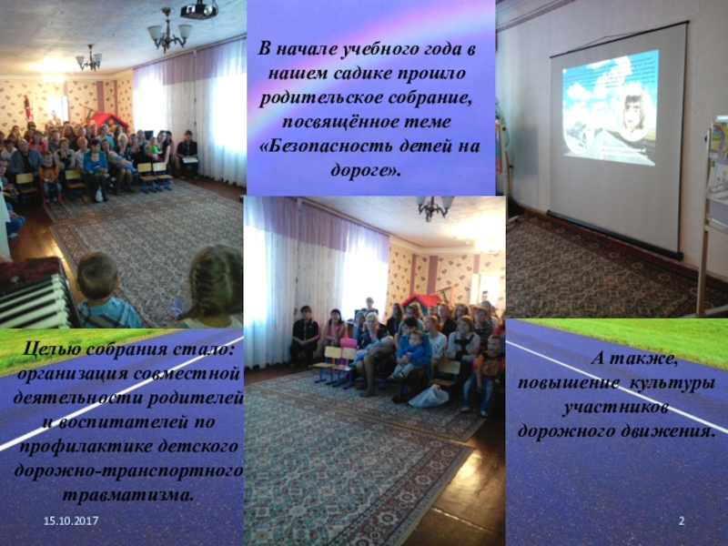 Целью собрания стало: организация совместной деятельности родителей и воспитателей по профилактике детского дорожно-транспортного травматизма.