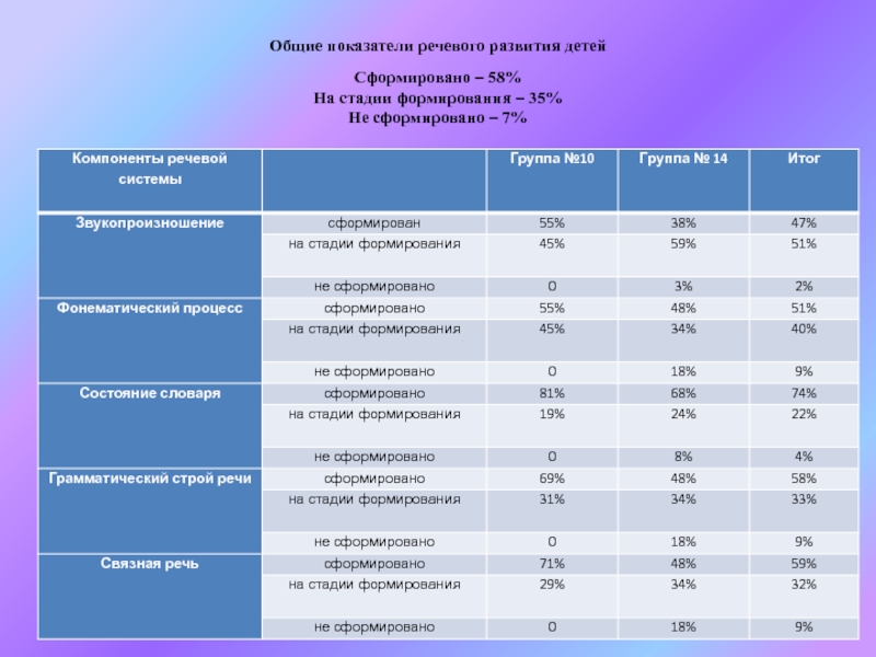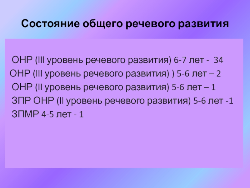 Слайд 11Состояние общего речевого развития