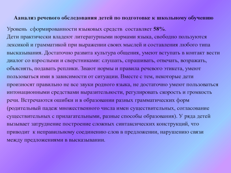 Аанализ речевого обследования детей по подготовке к школьному обучению