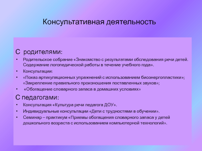 Слайд 15Консультативная деятельность