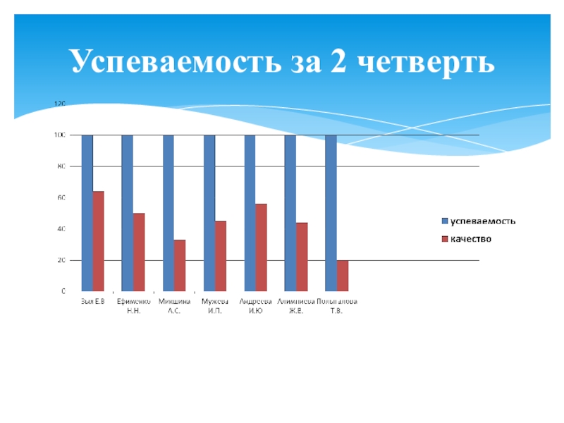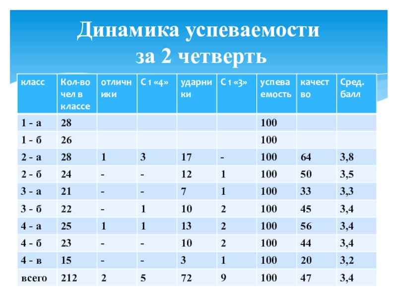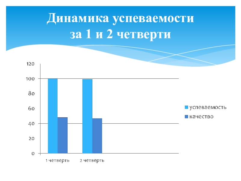 Слайд 6Динамика успеваемости за 1 и 2 четверти