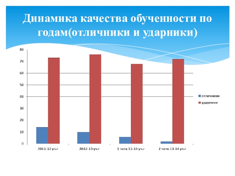 Слайд 8Динамика качества обученности по годам(отличники и ударники)