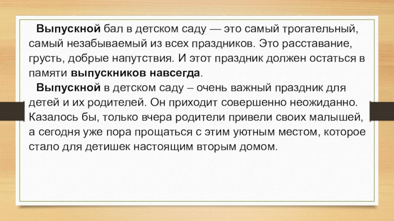 Слайд 9Выпускной бал в детском саду — это самый трогательный, самый незабываемый из