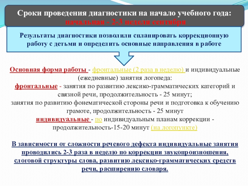 Результаты диагностики позволили спланировать коррекционную работу с детьми и определить основные направления в работе