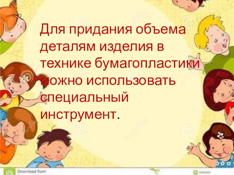 Слайд 3Для придания объема деталям изделия в технике бумагопластики можно использовать специальный