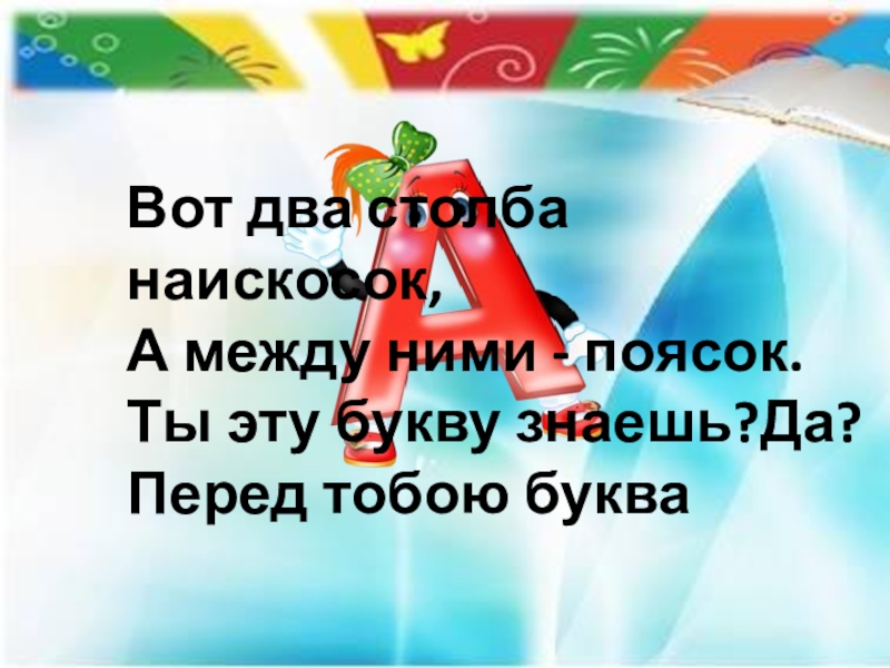 Вот два столба наискосок,  А между ними - поясок.  Ты эту букву знаешь?Да?  Перед