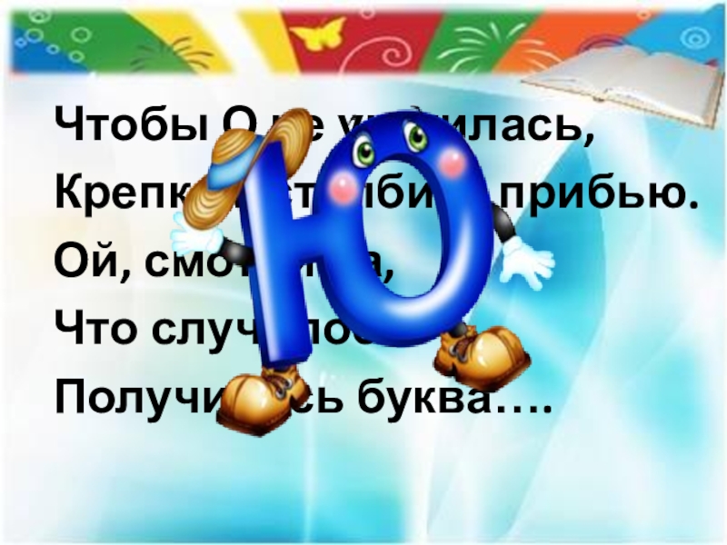 Чтобы О не укатилась,Крепко к столбику прибью.Ой, смотри-ка,Что случилось:Получилась буква….
