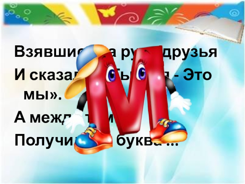 Взявшись за руки друзьяИ сказали: «Ты да я - Это мы».А между темПолучилась буква ...