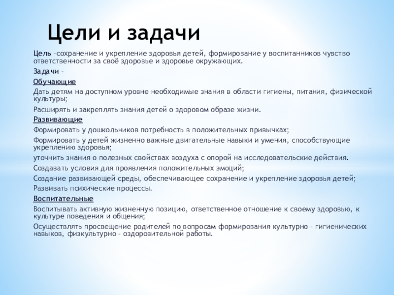Расширять и закреплять знания детей о здоровом образе жизни.