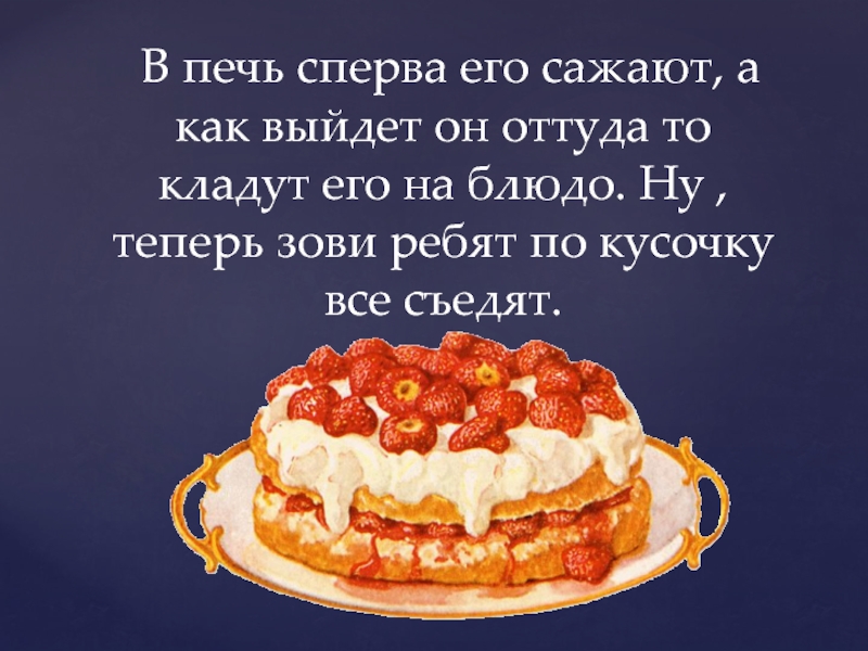 то кладут его на блюдо. Ну , теперь зови ребят по кусочку все съедят.