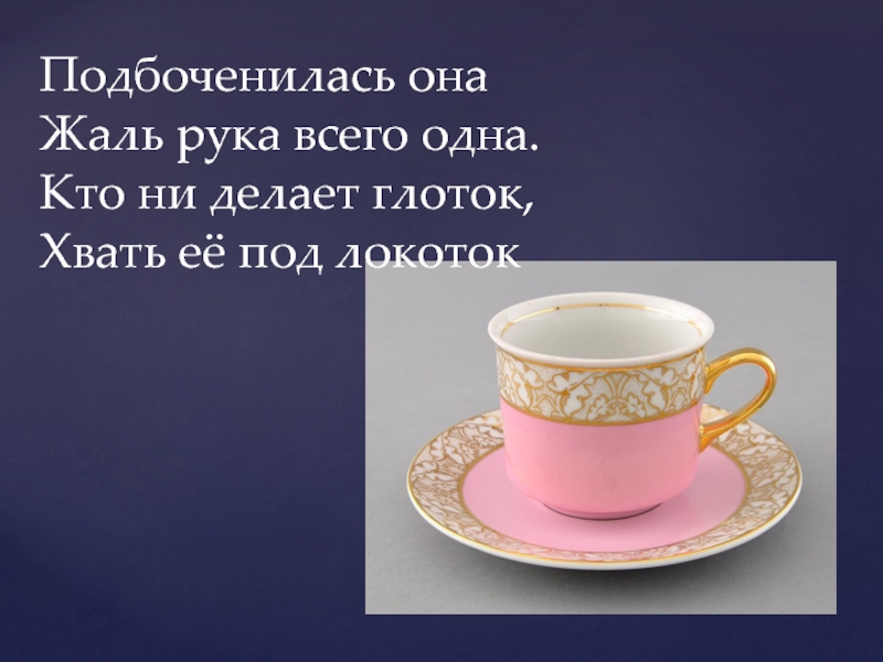 Слайд 22Подбоченилась она Жаль рука всего одна. Кто ни делает глоток, Хвать