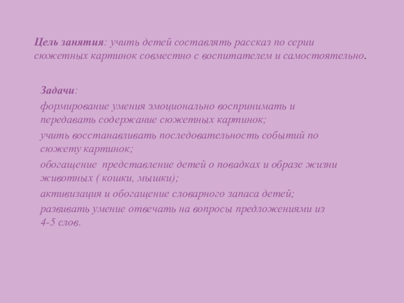 развивать умение отвечать на вопросы предложениями из 4-5 слов.