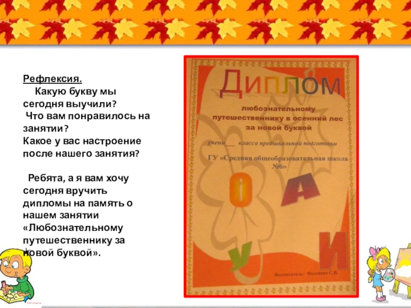 Ребята, а я вам хочу сегодня вручить дипломы на память о нашем занятии