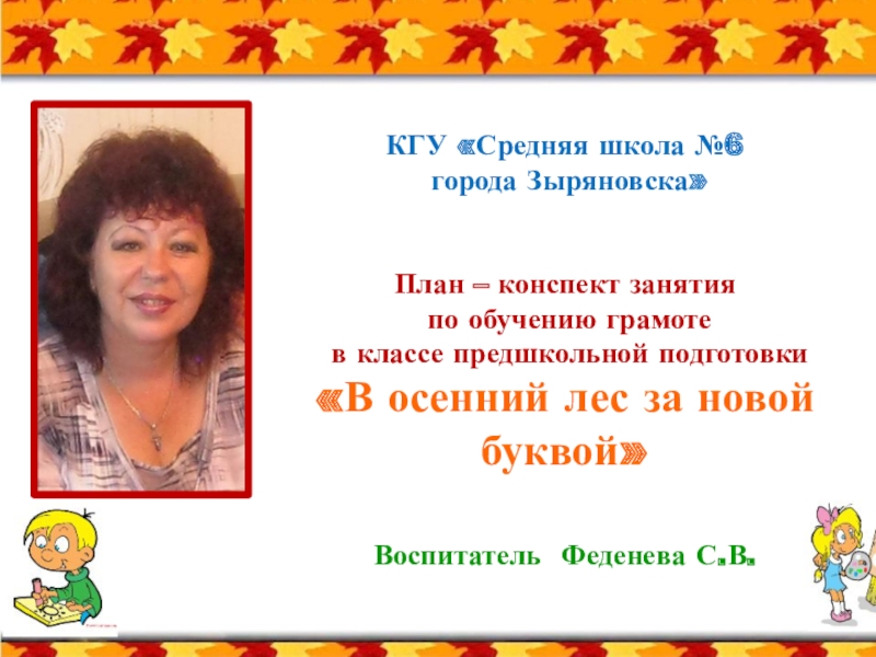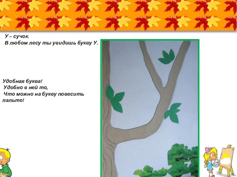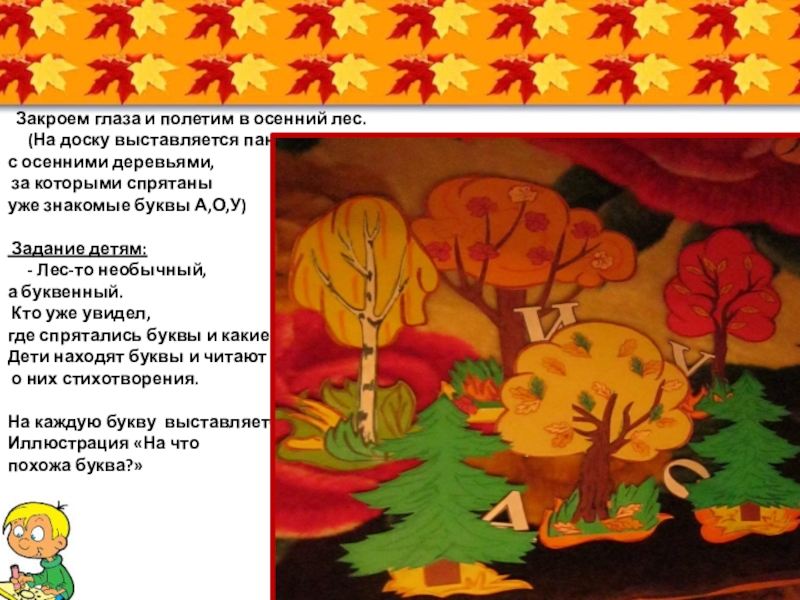 панно с изображением осеннего леса; иллюстрации «На что похожа буква».
