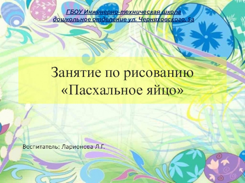 Занятие по рисованию «Пасхальное яйцо»ГБОУ Инженерно-техническая школа дошкольное отделение ул. Черняховского, 5а