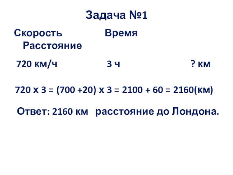 720 х 3 = (700 +20) х 3 = 2100 + 60 = 2160(км)