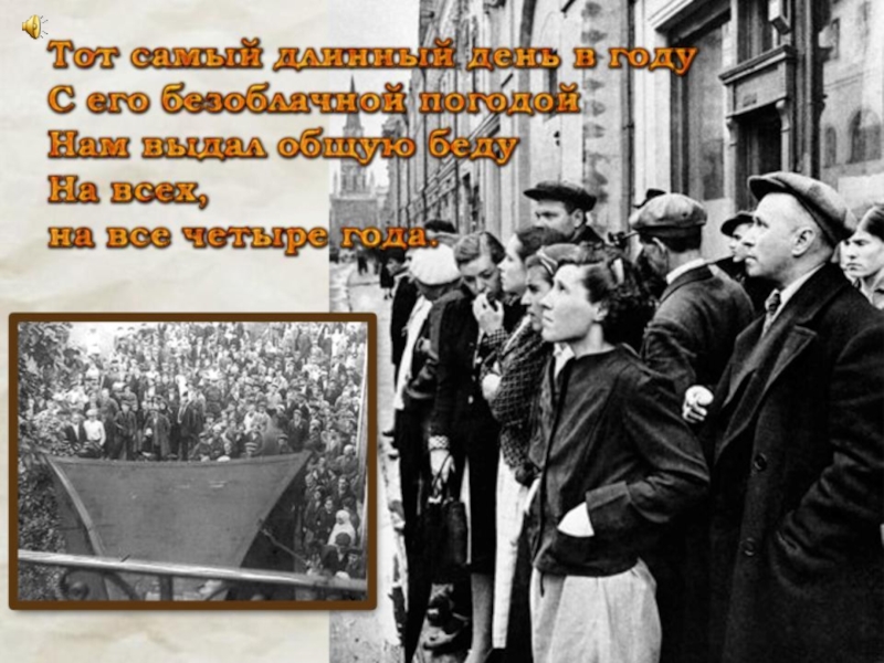 22 июня 1941 4 часа утраИюнь. Россия. Воскресенье. Рассвет в объятьях тишины. Осталось хрупкое мгновенье До первых выстрелов войны.