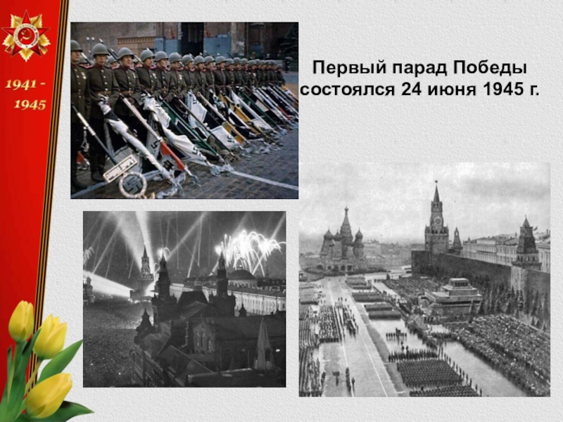 Слайд 37Первый парад Победы состоялся 24 июня 1945 г.