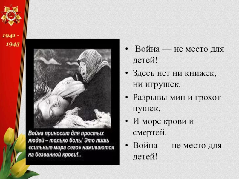 Слайд 24 Война — не место для детей!