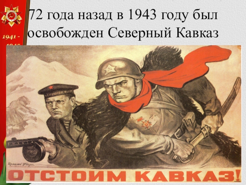 Слайд 4272 года назад в 1943 году был освобожден Северный Кавказ