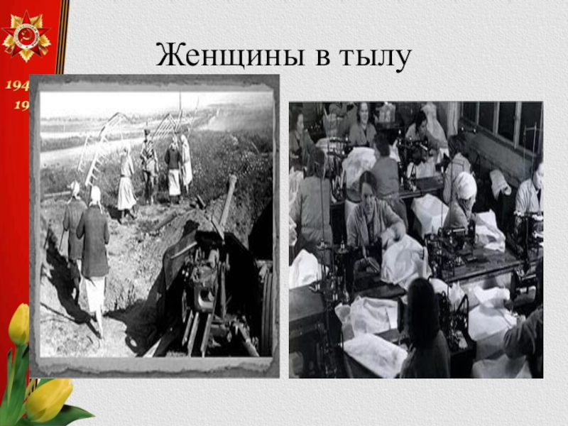 Слайд 14Женщины в тылу