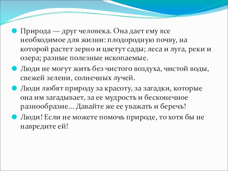 Природа — друг человека. Она дает ему все необходимое для жизни: