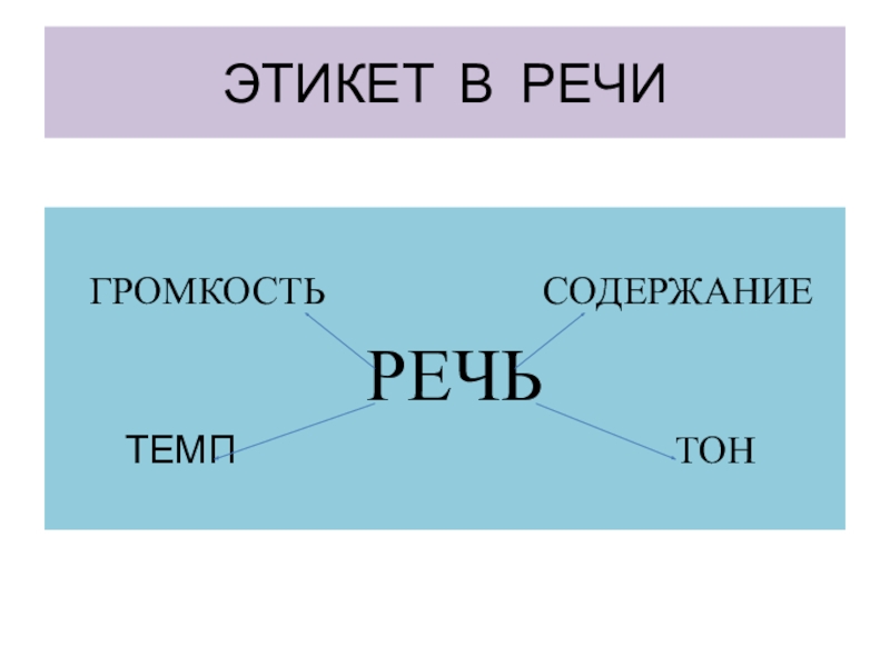 ЭТИКЕТ В РЕЧИ   ГРОМКОСТЬ           СОДЕРЖАНИЕ
