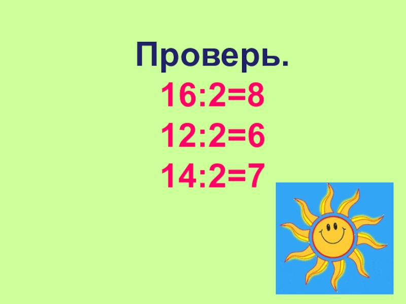 Проверь.16:2=812:2=614:2=7