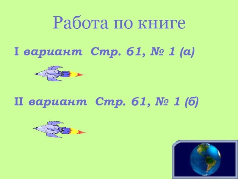 I вариант Стр. 61, № 1 (а)II вариант Стр. 61, № 1 (б)Работа по книге