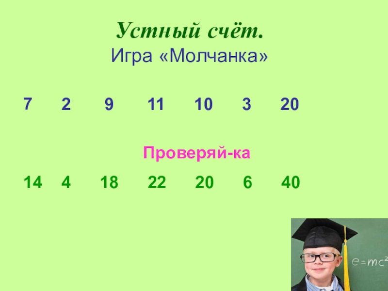 Слайд 6Устный счёт. Игра «Молчанка»
