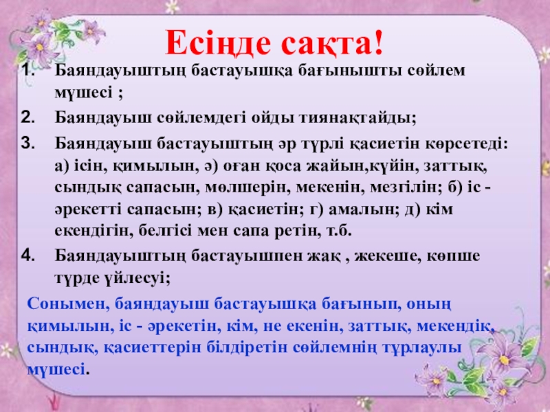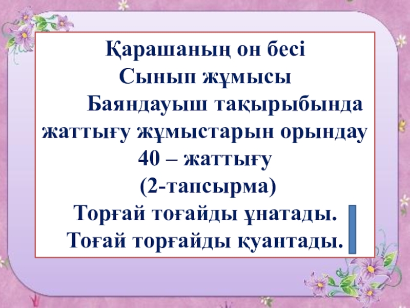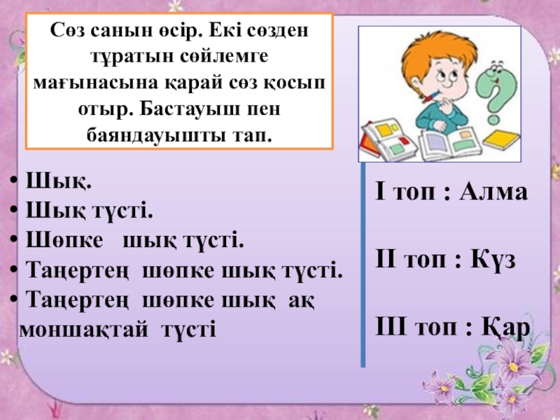 Бірінші сөйлемнің бастауышы мен баяндауышын тап.