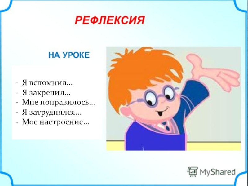 Я вспомнил…Я закрепил…Мне понравилось…Я затруднялся…Мое настроение…