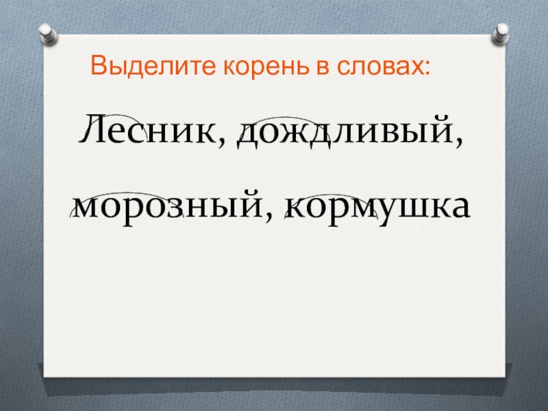 Лесник, дождливый, морозный, кормушкаВыделите корень в словах: