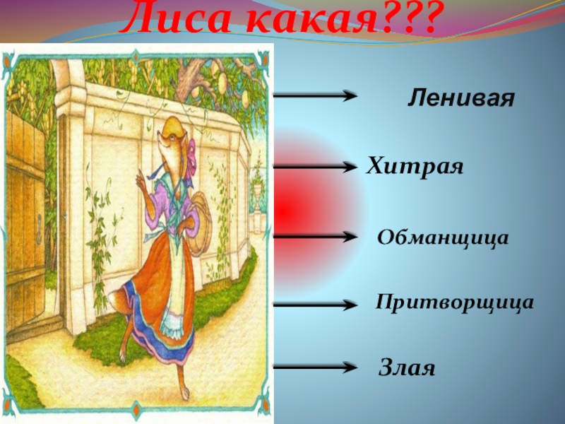 Ленивая		ХитраяЛиса какая???ОбманщицаПритворщицаЗлая