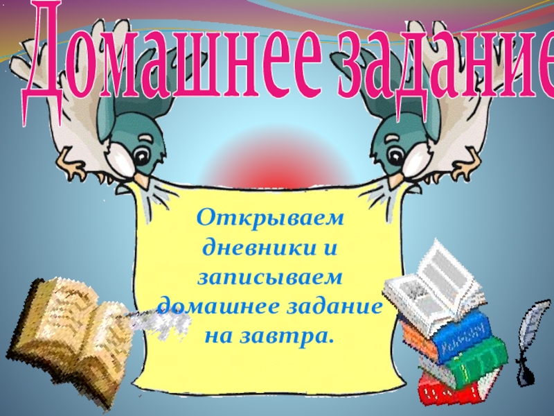 Домашнее задание:Открываем дневники и записываем домашнее задание на завтра.