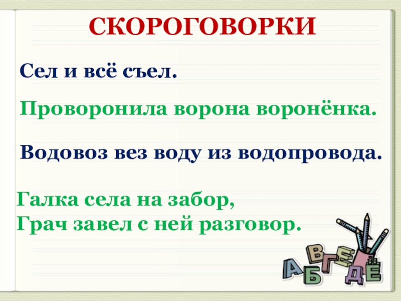 СКОРОГОВОРКИ