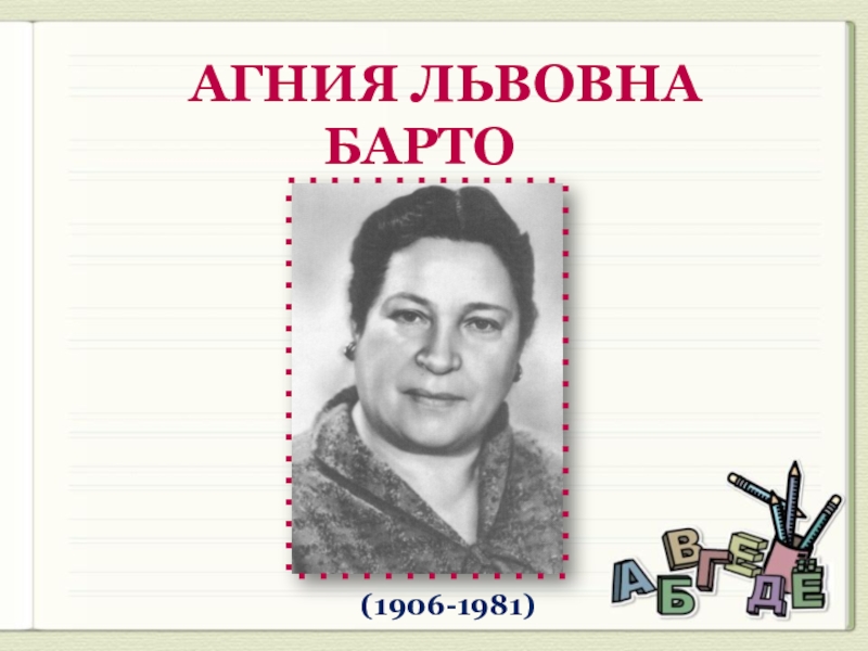 В 1925 были опубликованы ее первые стихотворения . Незаурядный талант Барто как детского поэта отметил