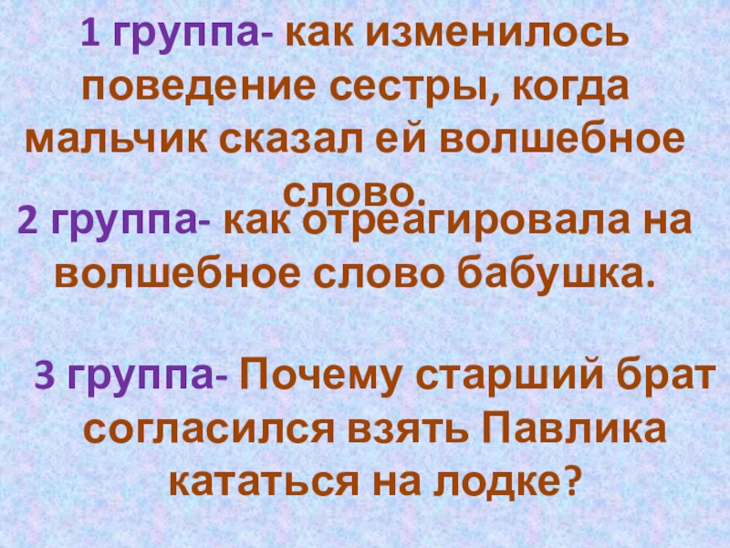 2 группа- как отреагировала на волшебное слово бабушка.