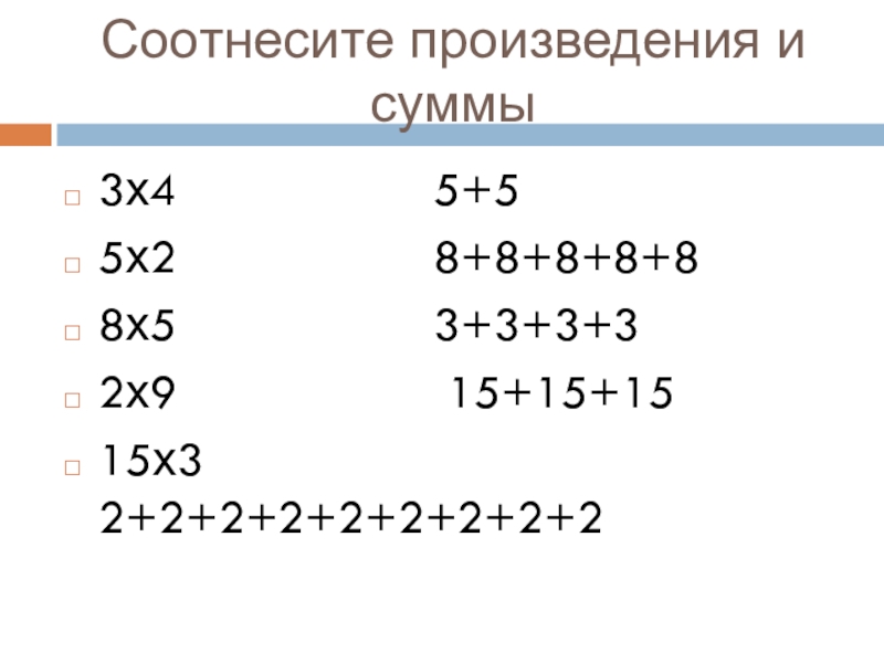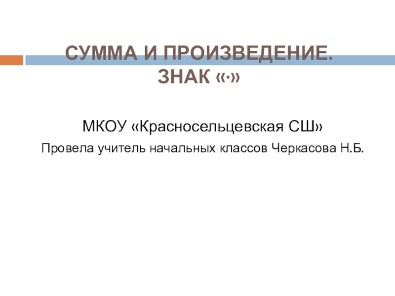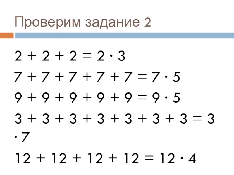 Презентация, доклад на тему Открытый урок по математике 2 класс на темуСумма и произведение. Знак умножения*.