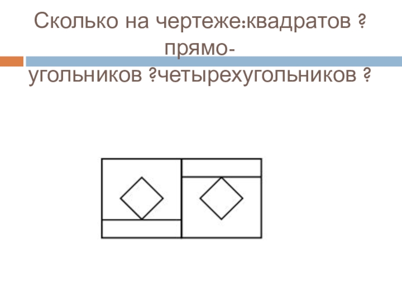 Сколько на чертеже:квадратов ?прямо- угольников ?четырехугольников ?