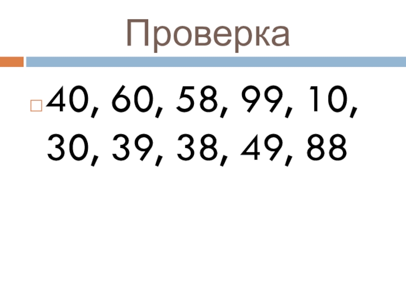 Проверка40, 60, 58, 99, 10, 30, 39, 38, 49, 88