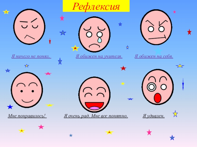 Мне понравилось! Я очень рад. Мне все понятно. Я удивлен.