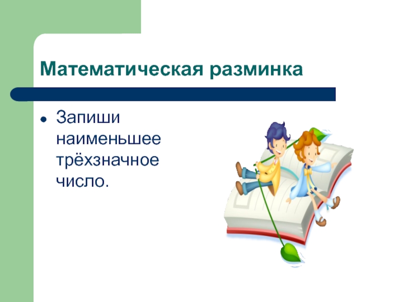 Математическая разминкаЗапиши наименьшее трёхзначное число.
